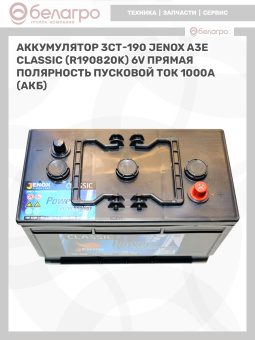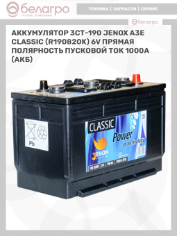 Аккумулятор 3СТ-190 JENOX A3E Classic (R190820K) 6V Прямая полярность пусковой ток 1000А (АКБ)