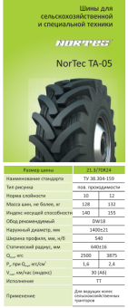 Автошина 21.3/70R24 мод.NorTec ТА-05 нс12 ТТ (сельхоз), Алтайский шинный комбинат