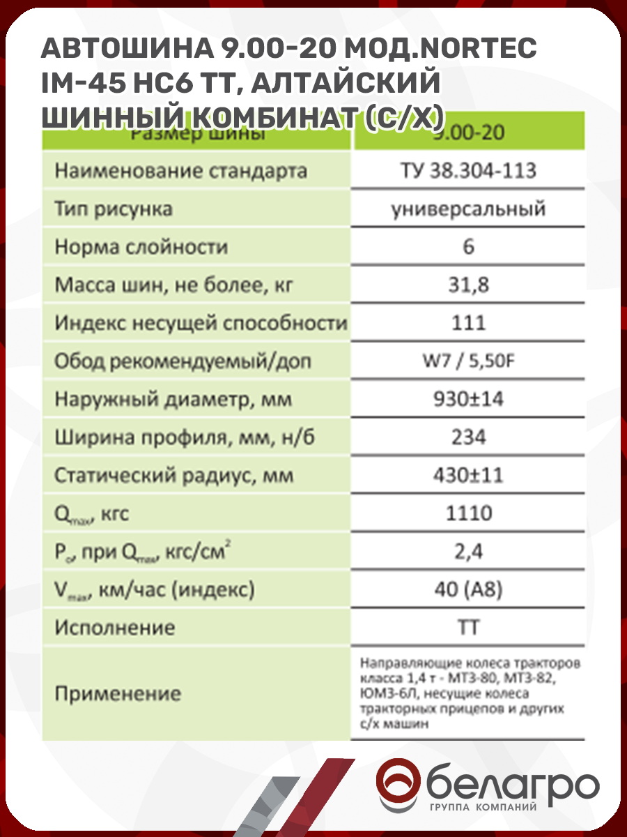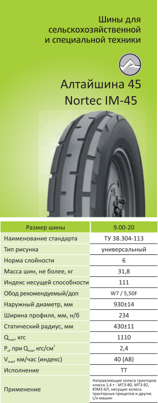 --Автошина 9.00-20 мод.Nortec IM-45 нс6 ТТ, Алтайский шинный комбинат (с/х)Запчасти к тракторам Беларус (МТЗ)ВкладышиЗапчасти к автомобилямГидроходоуменьшители и запчасти к нимГильзы цилиндровДвигателиЗапчасти к спецтехнике АМКОДОРЗапчасти к коммунальной спецтехникеДвигатели, запчасти к нимРасходники и техжидкостиХодовая часть и колёсаЗапчасти к двигателямСистемы и агрегатыКоленвалыПоршневые кольцаПоршневые пальцыПоршнекомплектыПоршниПусковые двигатели и запчасти к нимТурбокомпрессорыЗапчасти к тракторам ХТЗ (Т-150)