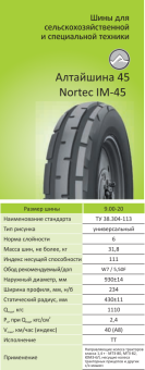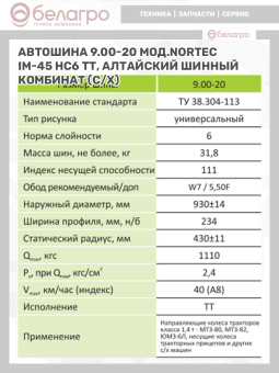 Автошина 9.00-20 мод.Nortec IM-45 нс6 ТТ, Алтайский шинный комбинат (с/х)