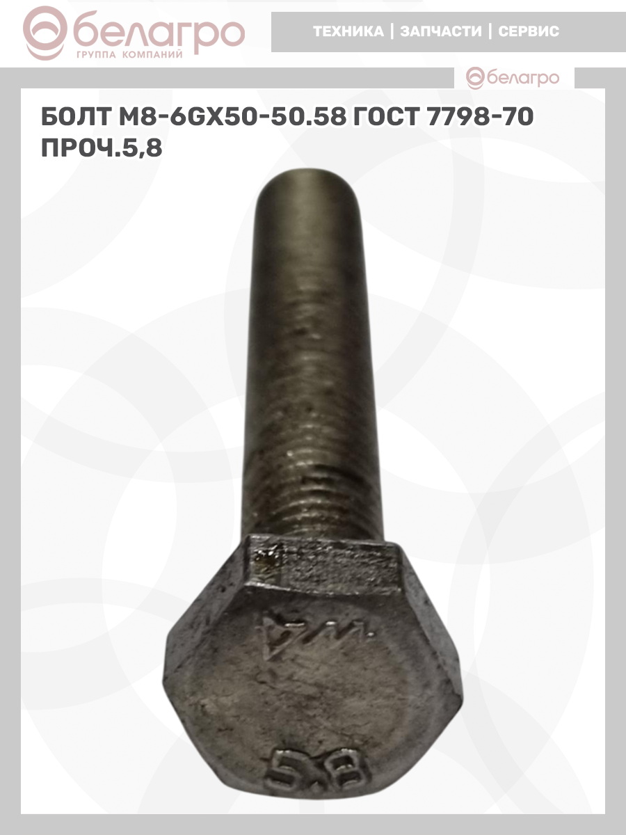 Болт М8-6gх50-50.58 ГОСТ 7798-70 проч.5,8
