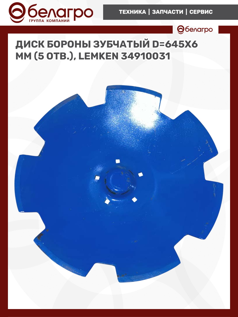 Диск бороны зубчатый D=645x6 mm (5 отв.), Lemken 34910031