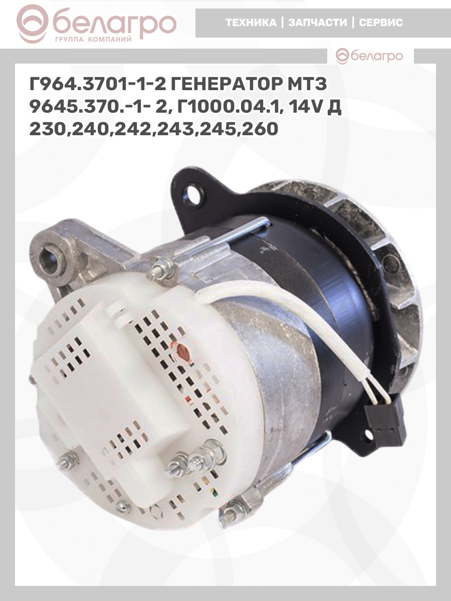 Г964.3701-1-2 Генератор МТЗ 9645.370.-1- 2, Г1000.04.1, 14v д 230,240,242,243,245,260, Беларусь