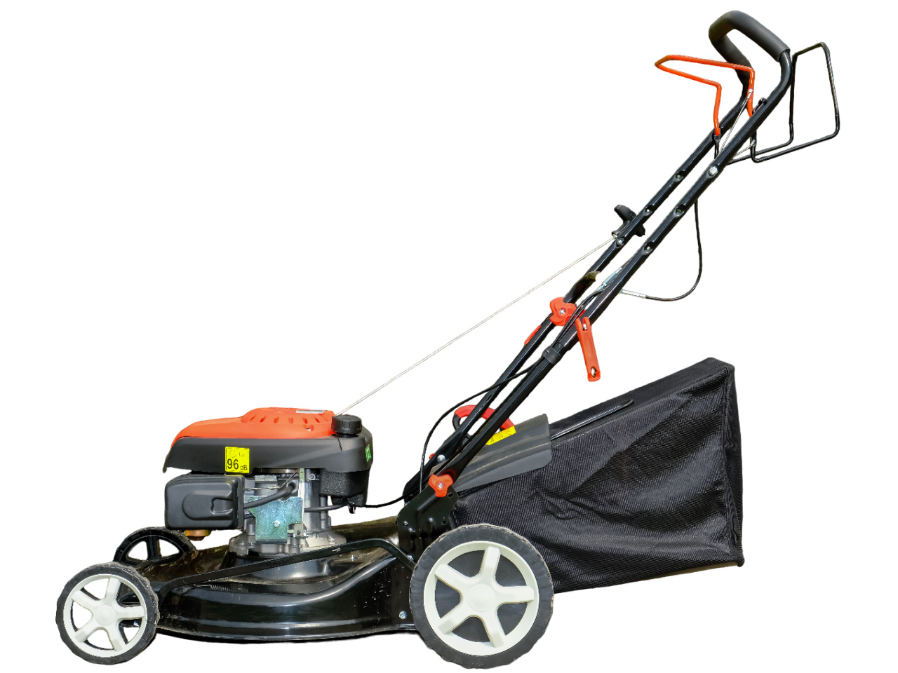 Имеется возможность сбора травы в травосборник и выброса назад, а также функция мульчирования
