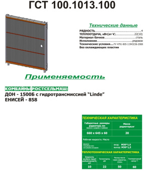 ГСТ100.1013.100 Радиатор масляный (медь, ст.бачки) 4-ряд Дон-1500Б/Енисей-858