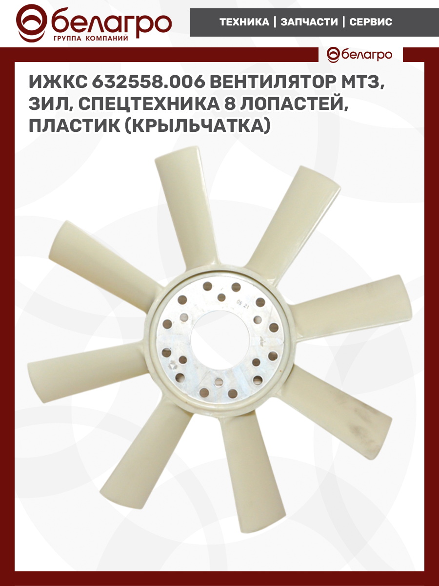 ИЖКС 632558.006 Вентилятор МТЗ, ЗИЛ, спецтехника 8 лопастей, пластик (крыльчатка), Беларусь