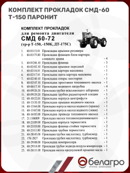 Комплект прокладок СМД-60 Т-150 паронит