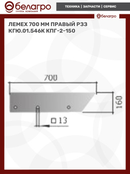 Лемех (700 мм) правый РЗЗ КГЮ.01.546К (КПГ-2-150)