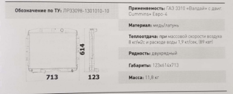 ЛР33098.1301010-10 Радиатор водяной (мед-лат 2-х ряд) 3309 двиг. ЯМЗ, Евро 4