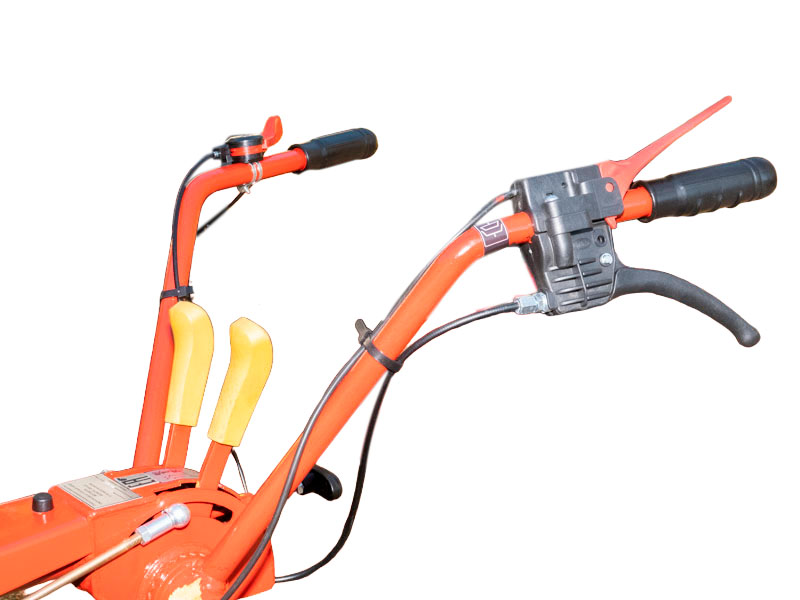 На верхней крышке корпуса трансмиссии крепится рулевая штанга, на которой расположены органы управления мотоблоком