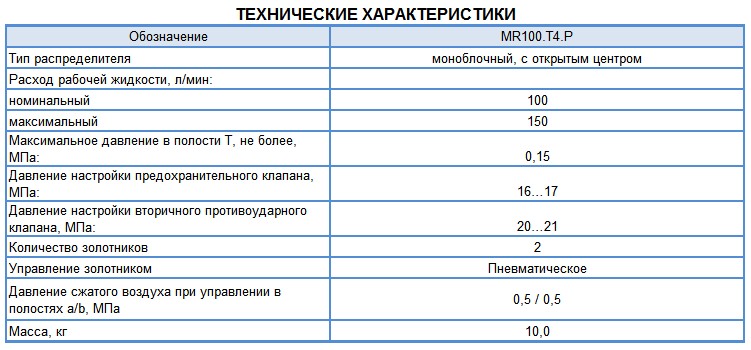 MR100.T4.P Гидрораспределитель (65115/65111/6520/6522/55111)