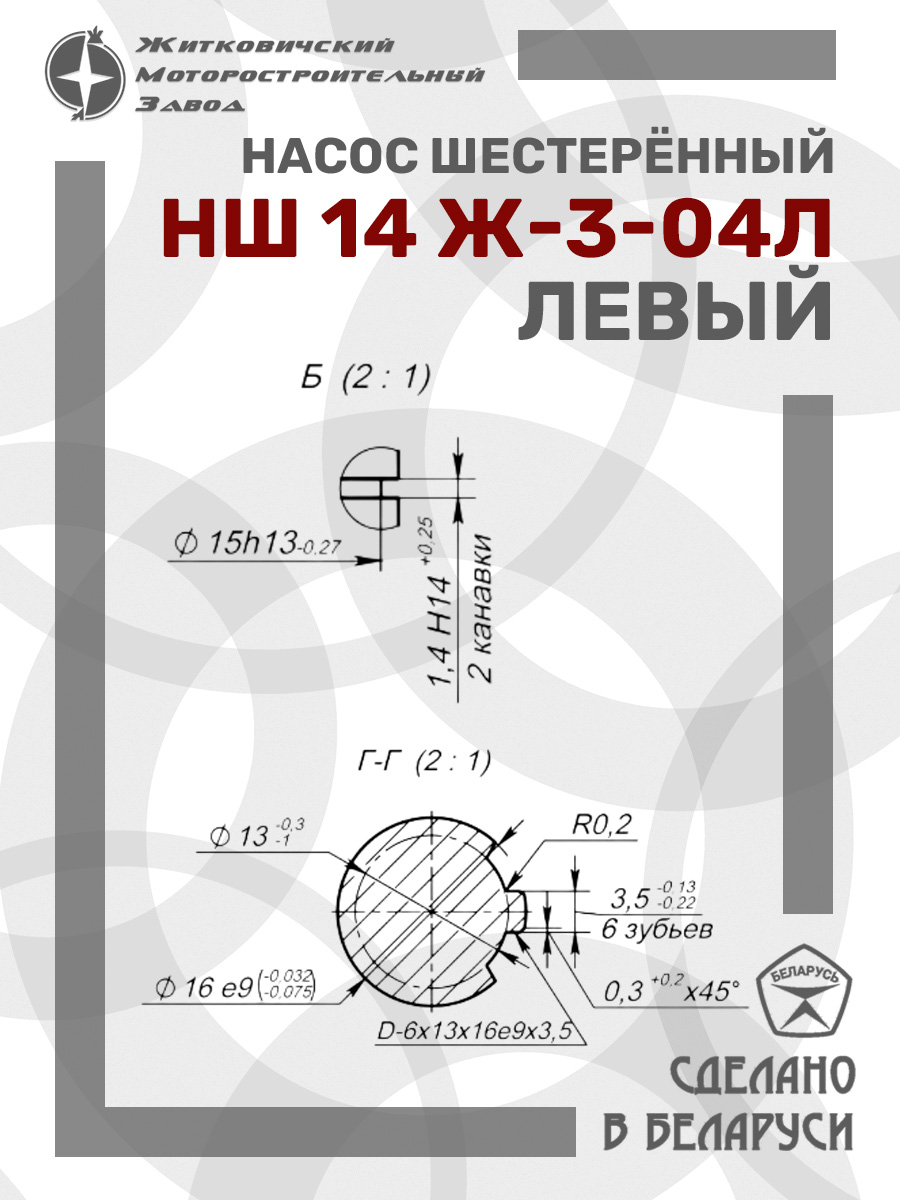 НШ 14 Ж-3-04Л Насос шестеренный (левый) 6-шлиц МТЗ