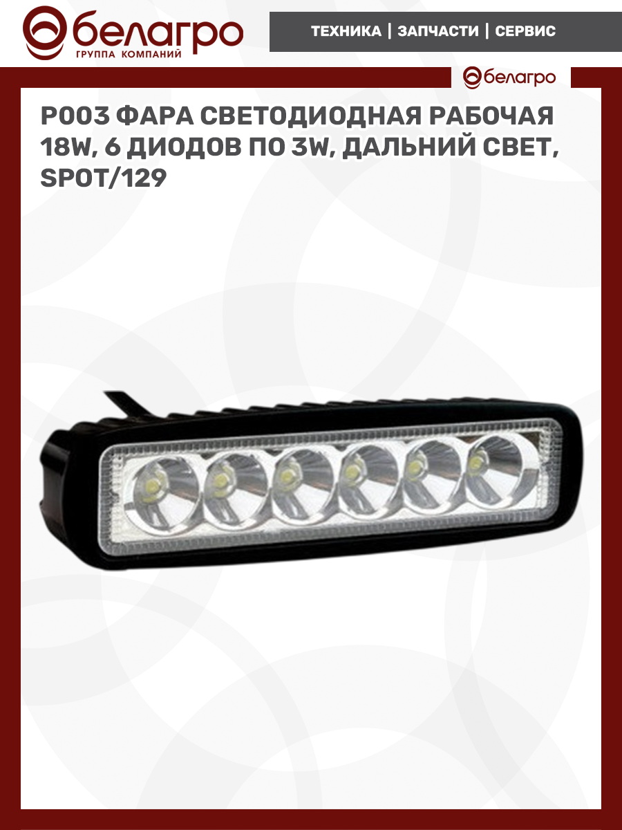P003 Фара светодиодная рабочая 18W, 6 диодов по 3W, дальний свет, spot/129, РФ