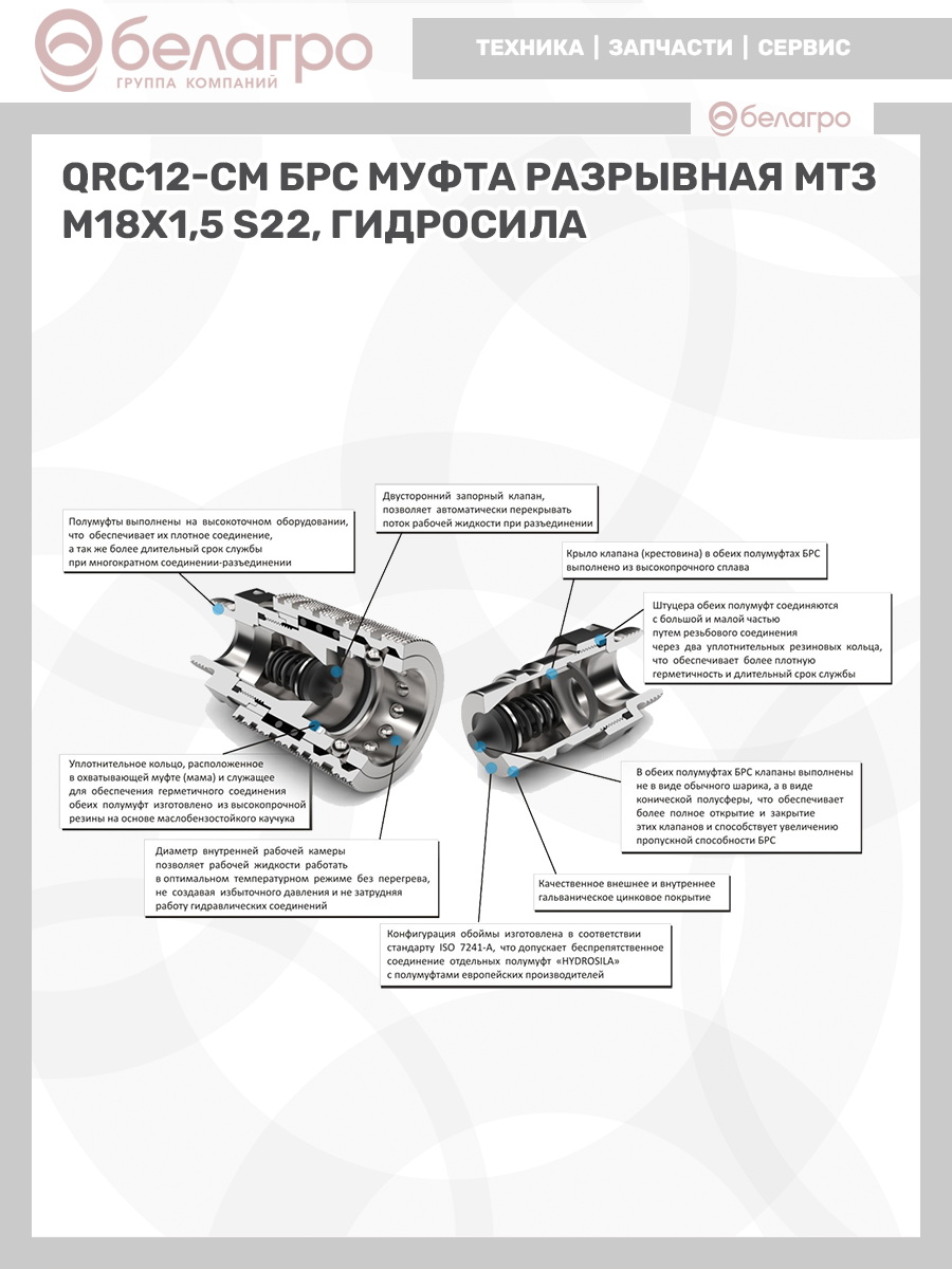 QRC12-CM БРС (муфта разрывная) МТЗ M18х1,5 S22 , Гидросила