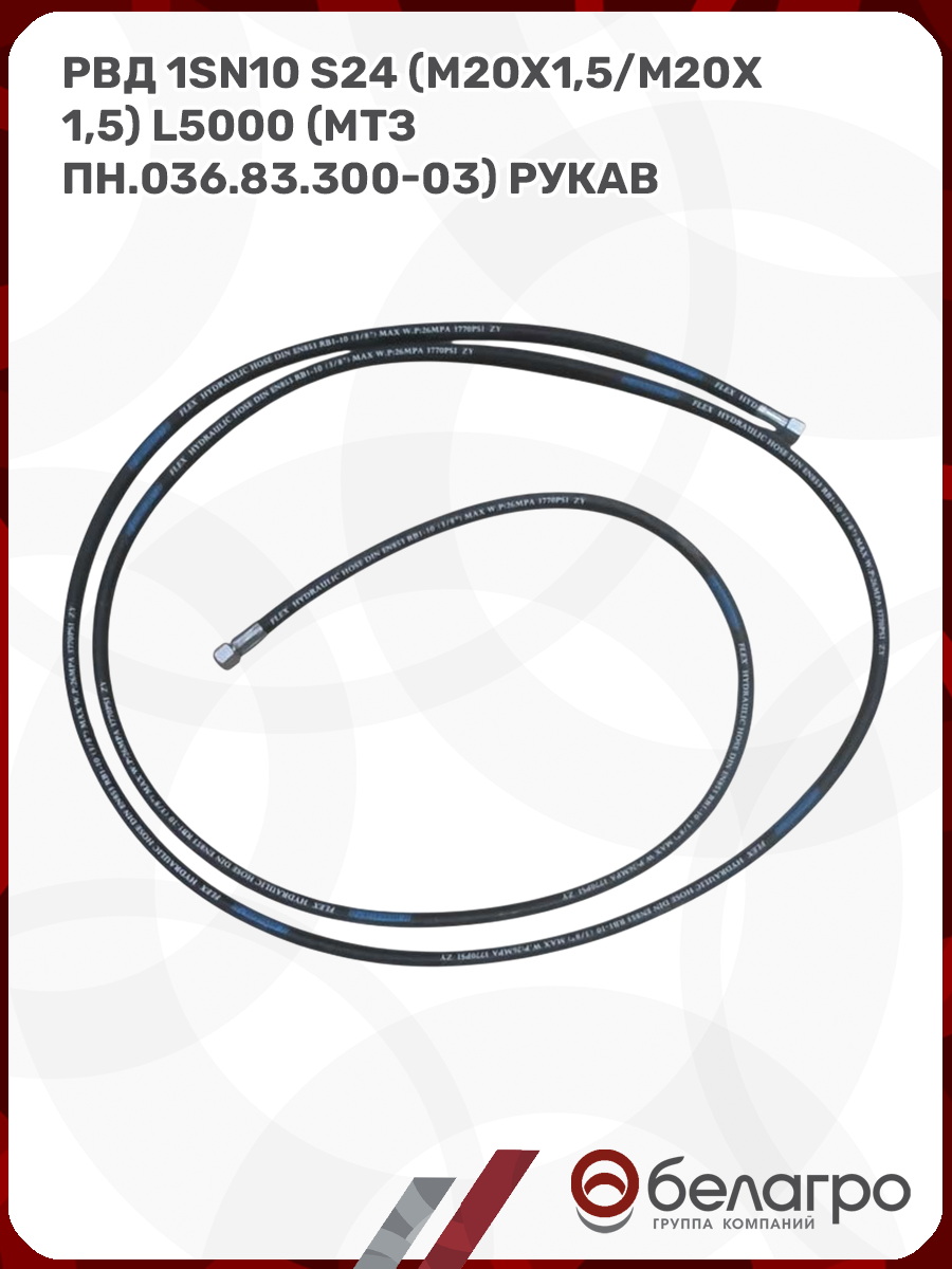 РВД (Рукав высокого давления) 1SN10 S24 (М20х1,5/М20х1,5) L5000 (МТЗ ПН.036.83.300-03) рукав