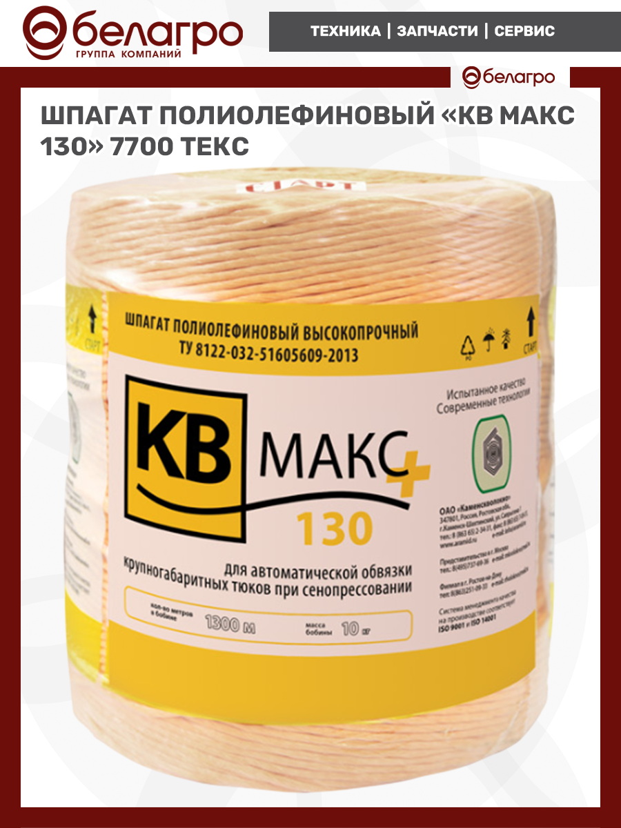 Шпагат полиолефиновый "КВ МАКС 130" 7700 ТЕКС (РФ, бобина 10кг)