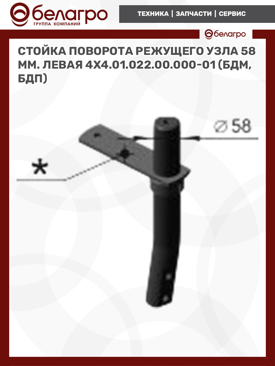 Стойка поворота режущего узла (58 мм.) левая 4х4.01.022.00.000-01 (БДМ, БДП)