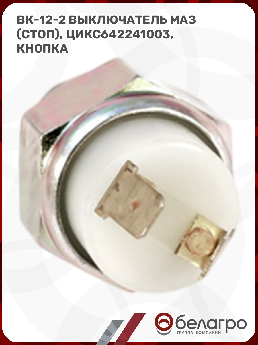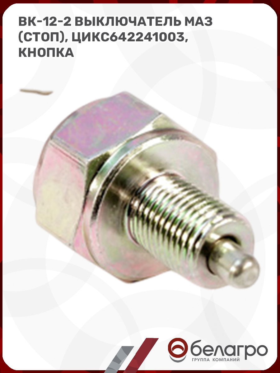 --ВК-12-2 Выключатель МАЗ (стоп), ЦИКС642241003, кнопка (А)Запчасти к тракторам Беларус (МТЗ)ВкладышиГидроходоуменьшители и запчасти к нимЗапчасти к автомобилямГильзы цилиндровЗапчасти к спецтехнике АМКОДОРДвигателиЗапчасти к коммунальной спецтехникеДвигатели, запчасти к нимРасходники и техжидкостиХодовая часть и колёсаЗапчасти к двигателямСистемы и агрегатыКоленвалыПоршневые кольцаПоршневые пальцыПоршнекомплектыПоршниПусковые двигатели и запчасти к нимТурбокомпрессорыЗапчасти к тракторам ХТЗ (Т-150)
