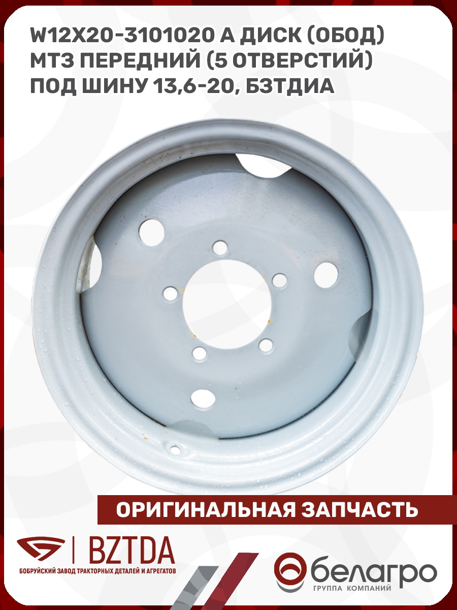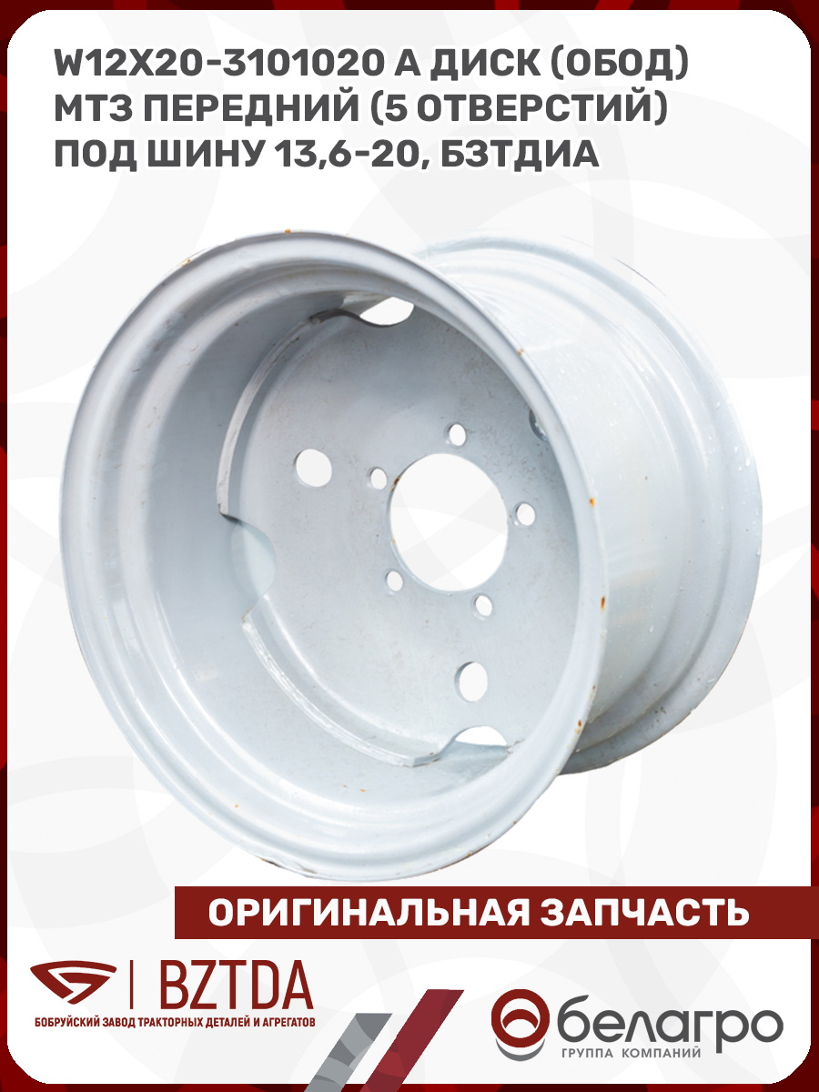 W12х20-3101020 А Диск (обод) МТЗ передний (5 отверстий) под шину 13,6-20, БЗТДиА