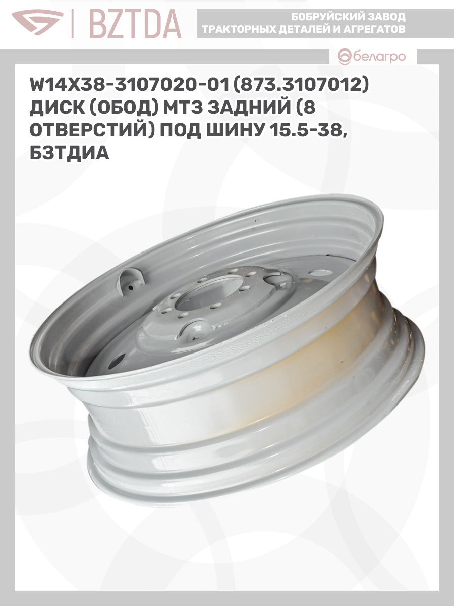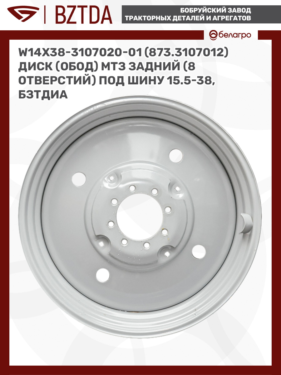 -W14х38-3107020-01 (873.3107012) Диск (обод) МТЗ задний (8 отверстий) под шину 15.5-38, БЗТДиАВкладышиГидроходоуменьшители и запчасти к нимЗапчасти к автомобилямГильзы цилиндровЗапчасти к спецтехнике АМКОДОРДвигателиЗапчасти к коммунальной спецтехникеДвигатели, запчасти к нимРасходники и техжидкостиЗапчасти к двигателямХодовая часть и колёсаСистемы и агрегатыКоленвалыПоршневые кольцаПоршневые пальцыПоршнекомплектыПоршниПусковые двигатели и запчасти к нимТурбокомпрессорыЗапчасти к тракторам ХТЗ (Т-150)