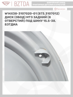 W14х38-3107020-01 (873.3107012) Диск (обод) МТЗ задний (8 отверстий) под шину 15.5-38, БЗТДиА
