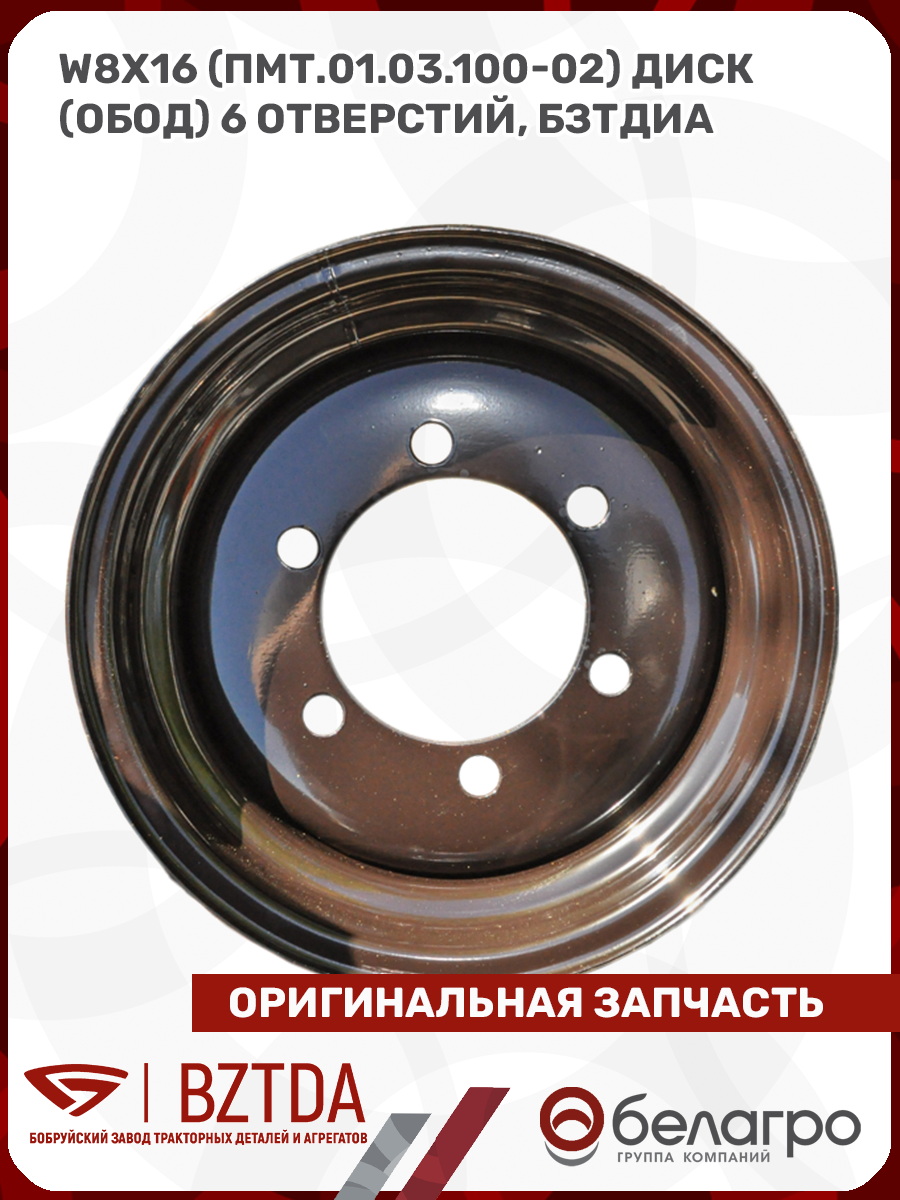 W8х16 (ПМТ.01.03.100-02) Диск (обод) 6 отверстий, БЗТДиА