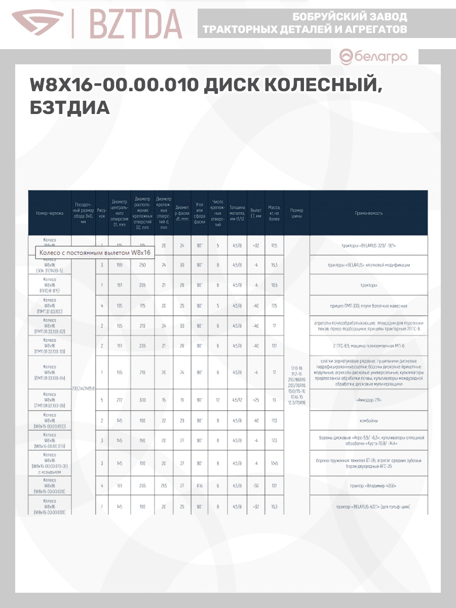 --W8х16 (W8х16-00.00.010) Диск колесный, БЗТДиАЗапчасти к тракторам Беларус (МТЗ)ВкладышиЗапчасти к автомобилямГидроходоуменьшители и запчасти к нимГильзы цилиндровДвигателиЗапчасти к спецтехнике АМКОДОРЗапчасти к коммунальной спецтехникеДвигатели, запчасти к нимРасходники и техжидкостиХодовая часть и колёсаЗапчасти к двигателямСистемы и агрегатыКоленвалыПоршневые кольцаПоршневые пальцыПоршнекомплектыПоршниПусковые двигатели и запчасти к нимТурбокомпрессорыЗапчасти к тракторам ХТЗ (Т-150)
