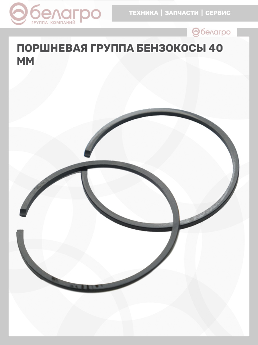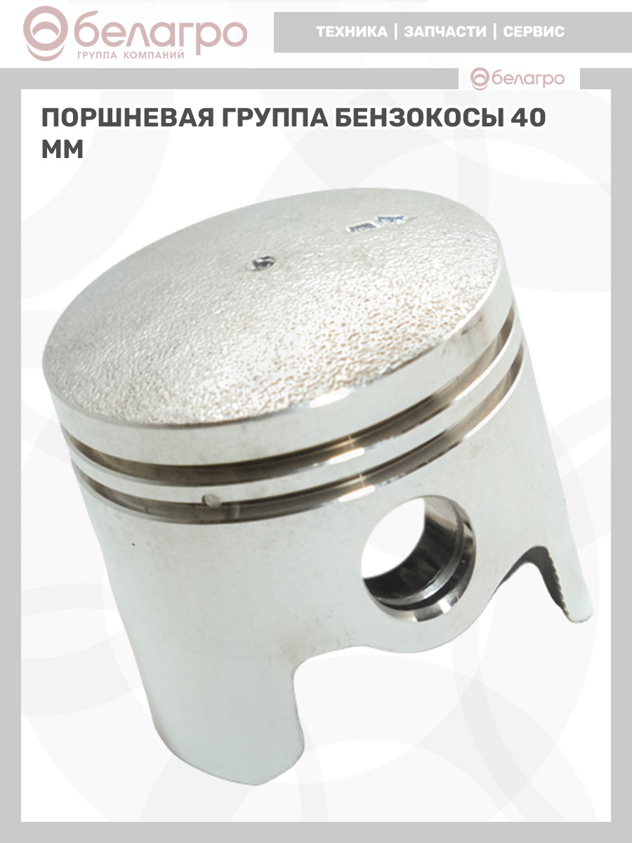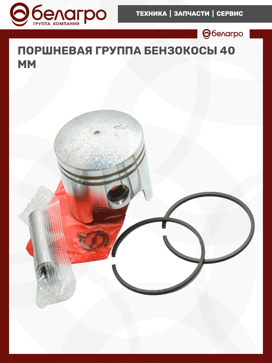 В комплект входит: поршень диаметром 40 мм, кольца компрессионные, кольца стопорные, палец поршневой диаметром 10mm